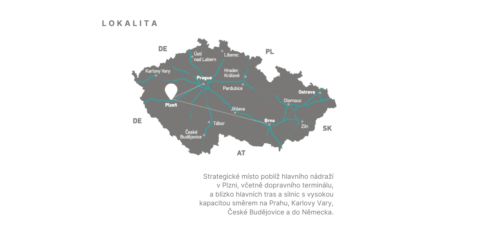 Rekonstruovaný bývalý průmyslový areál se nachází na strategickém místě poblíž hlavního nádraží v Plzni, včetně dopravního terminálu, a blízko hlavních tras a silnic s vysokou kapacitou směrem na Prahu, Karlovy Vary, České Budějovice a do Německa. Nachází se v městském obvodě Plzeň-Slovany, kde žije 35 000 obyvatel. V těsné blízkosti se nacházejí obchodní a nákupní centra, stejně jako vzdělávací a sportovní infrastruktura. Architektonický návrh rekonstrukce bývalé průmyslové oblasti vychází z původního industriálního ztvárnění, které je doplněno kontrastními moderními prvky. Cílem návrhu, který vytvořila studia Ateliér Ostrava a PROFURE atelier, bylo zachovat původní charakter navrhovaných objektů a využít všechny stávající zděné obvodové konstrukce a skeletový systém. Areál představuje komplexní prostor, který bude plnit ty nejmodernější požadavky nájemců na administrativní a komerční zázemí. Areál je vybaven fotovoltaickou elektrárnou a tepelnými čerpadly, které zajistí úsporný energetický provoz. Energetické štítky (PENB) – kategorie B – Velmi úsporná. Novostavba (hala D) – kategorie A – Mimořádně úsporná.